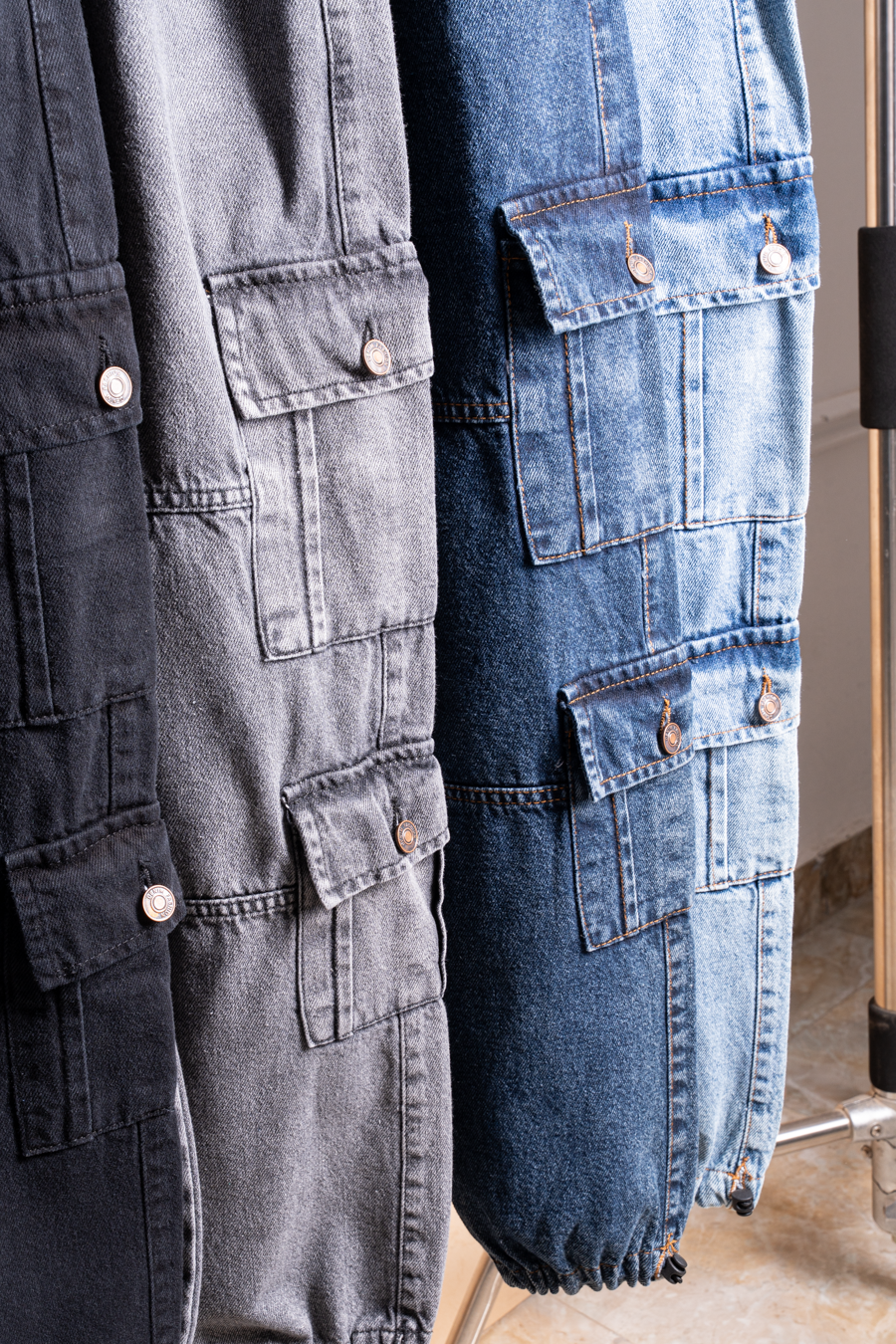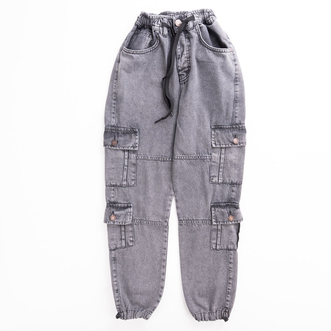 شروال جينز كارجو شبابي بخامة جينز عالية الجودة، تصميم عملي مناسب للخروجات والدراسة والمهام اليومية.