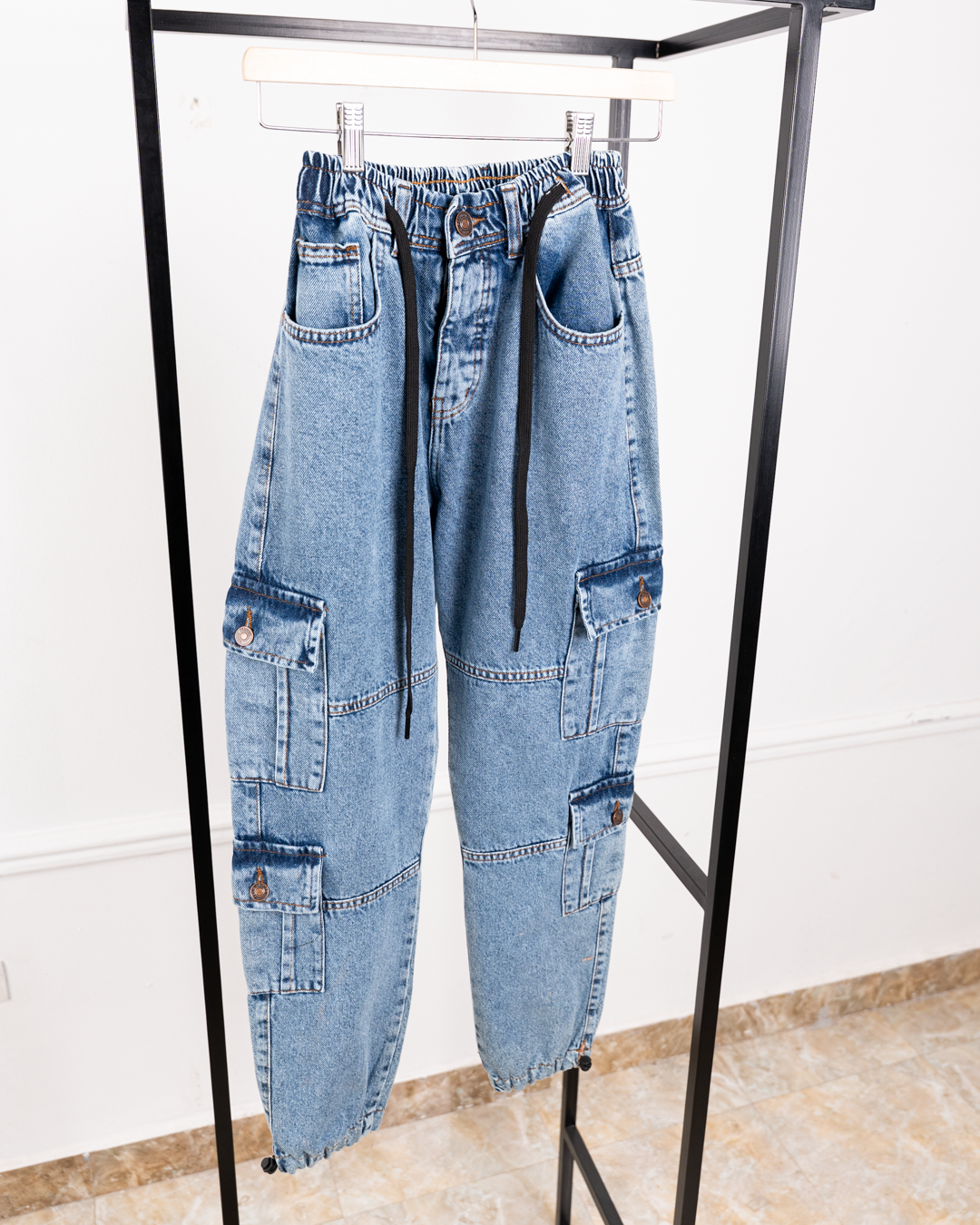 شروال جينز كارجو من مرامش هو الاختيار المثالي للي بيحب اللوك العملي والتريندي في نفس الوقت.