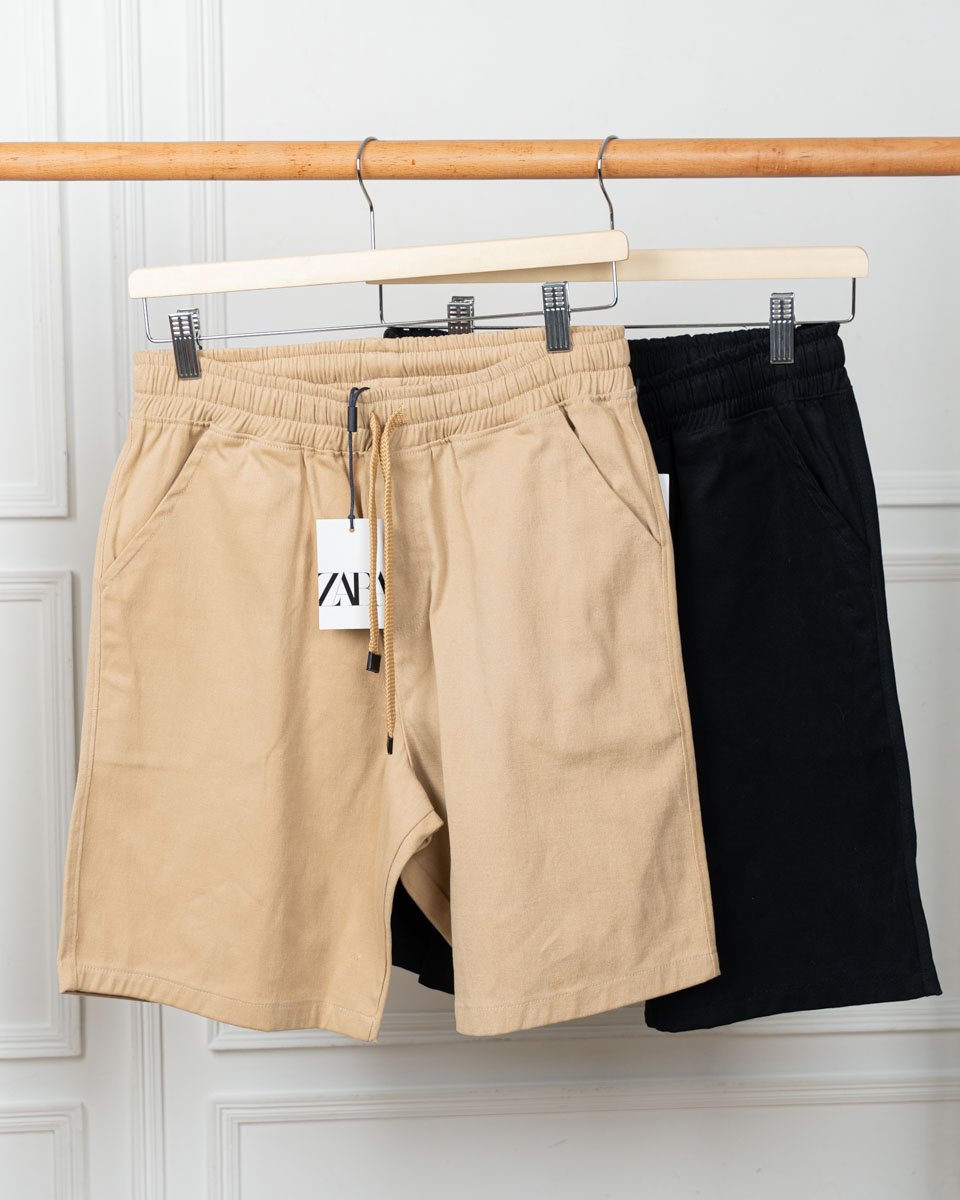 شورت رجالي ZARA جبردين 👕 خامة قطن 100% جبردين، تقفيل بروفيشنال، تلبيس مظبوط على الجسم. متوفر باللونين الأسود والبيج لإطلالة كاجوال شيك.