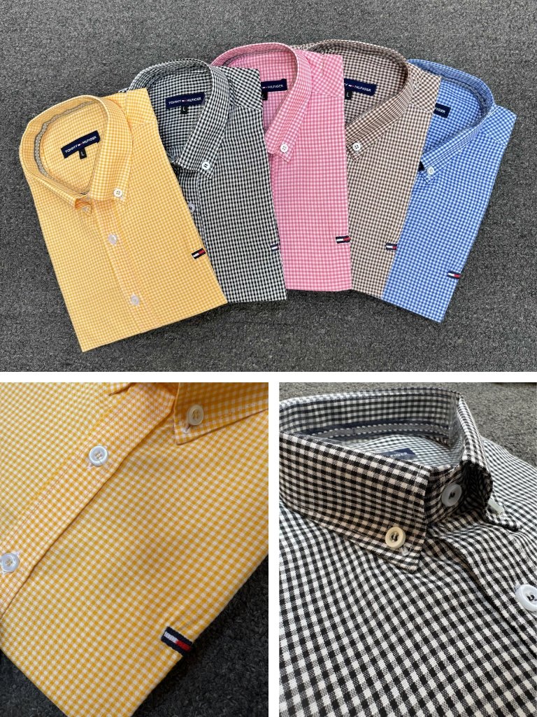 قميص رجالي Tommy  كاروهات 👔 خامة دكرون معالج ضد الوبر والانكماش، لوجو مطرز، Regular Fit، متوفر بمقاسات من L حتى 5XL وألوان تريندي.