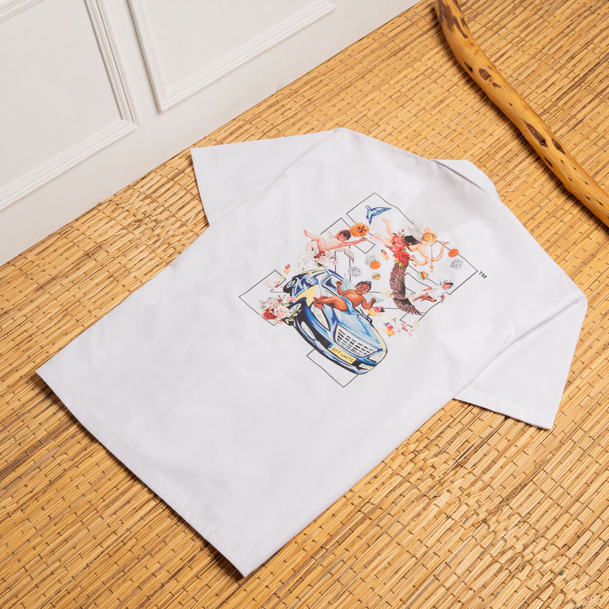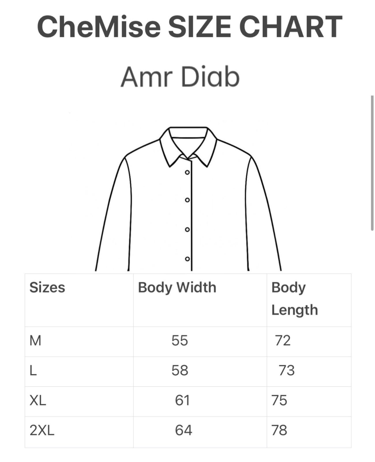 قميص عمرو دياب أوف وايت من Maramesh، بخامة بوبلين قطن 100%، تصميم شيك مستوحى من إطلالة Pepsi، متوفر بمقاسات دقيقة بالوزن من M حتى 2XL.