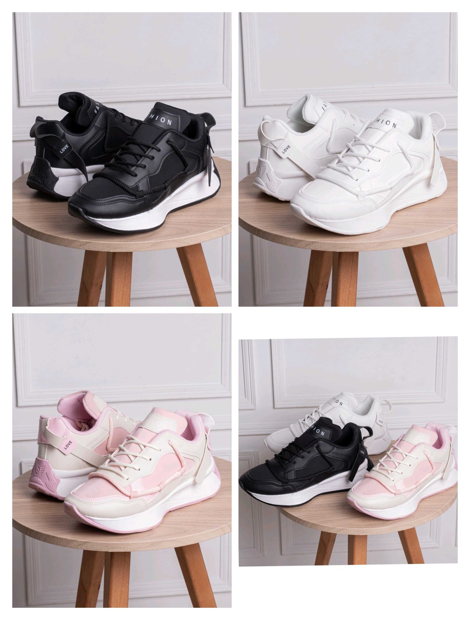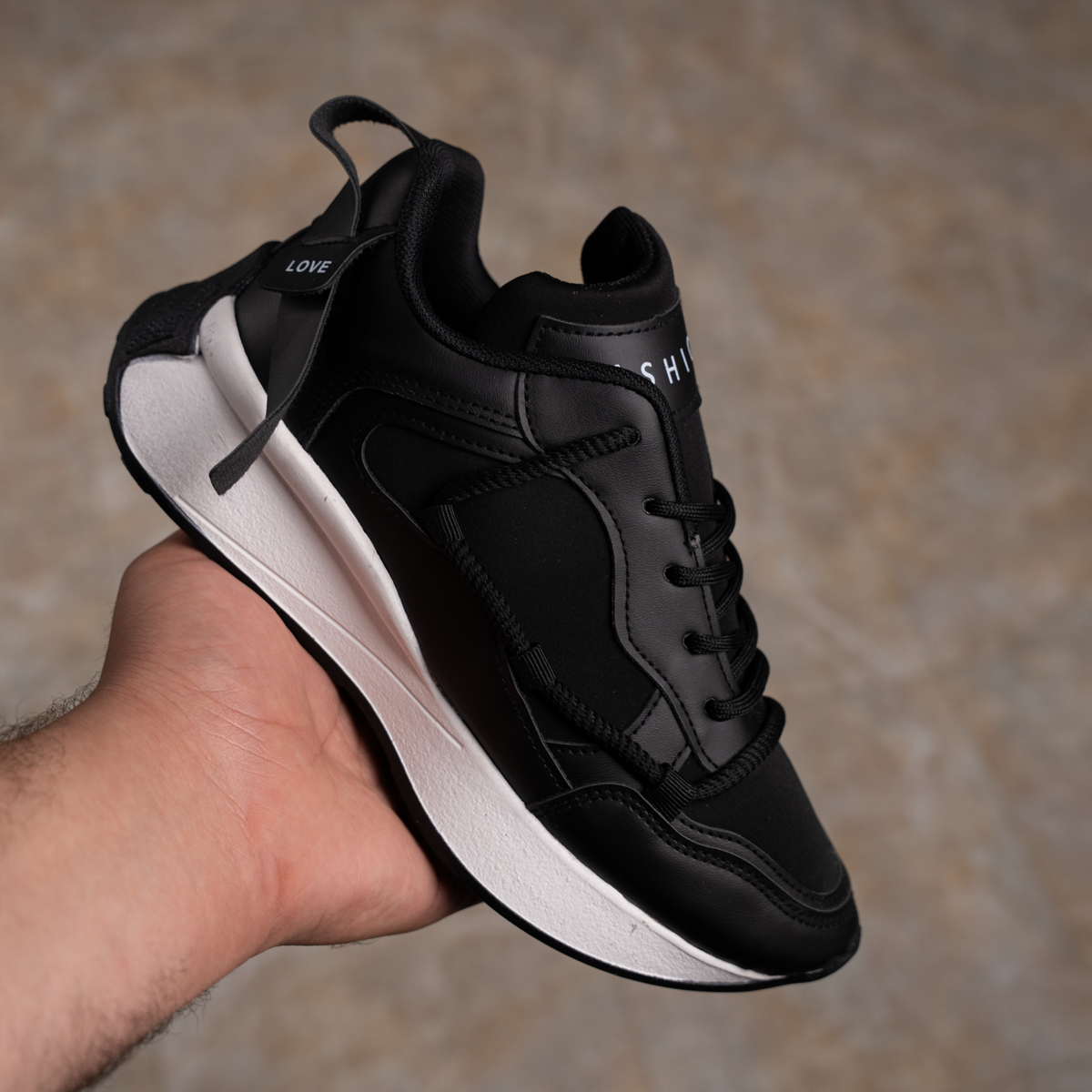 ✅ التصميم: سنيكرز تريندي مكتوب عليه “FASHION” و”LOVE”، عشان يضيف لمسة مختلفة ومميزة لأي Outfit.
