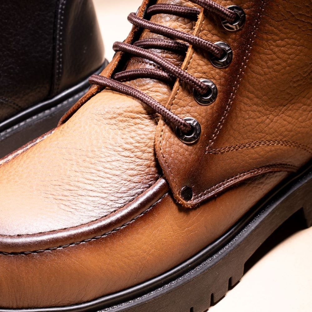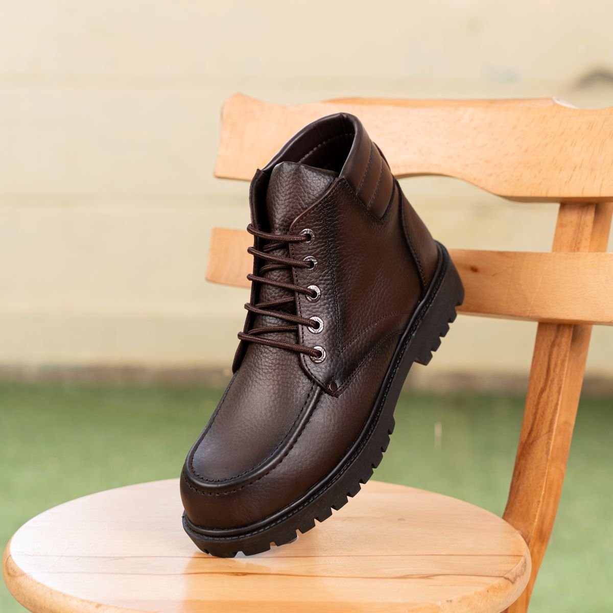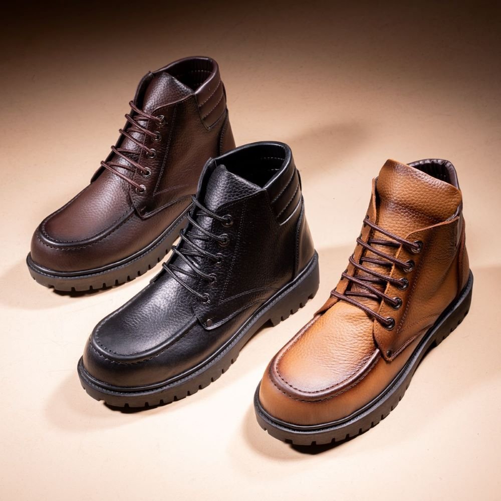 هاف بوت رجالي جلد طبيعي J2 بخامة فاخرة 100%، تصميم أنيق يناسب الخروجات والمناسبات، نعل مقاوم للانزلاق وفرش طبي مريح، متوفر بألوان أسود، بني، وهافان.