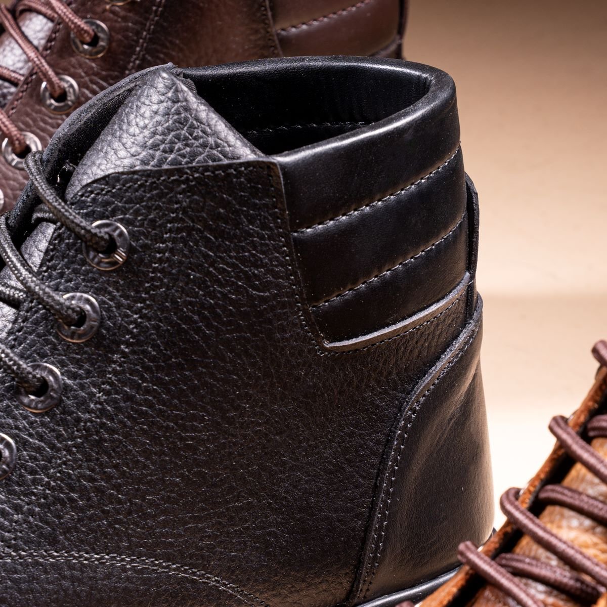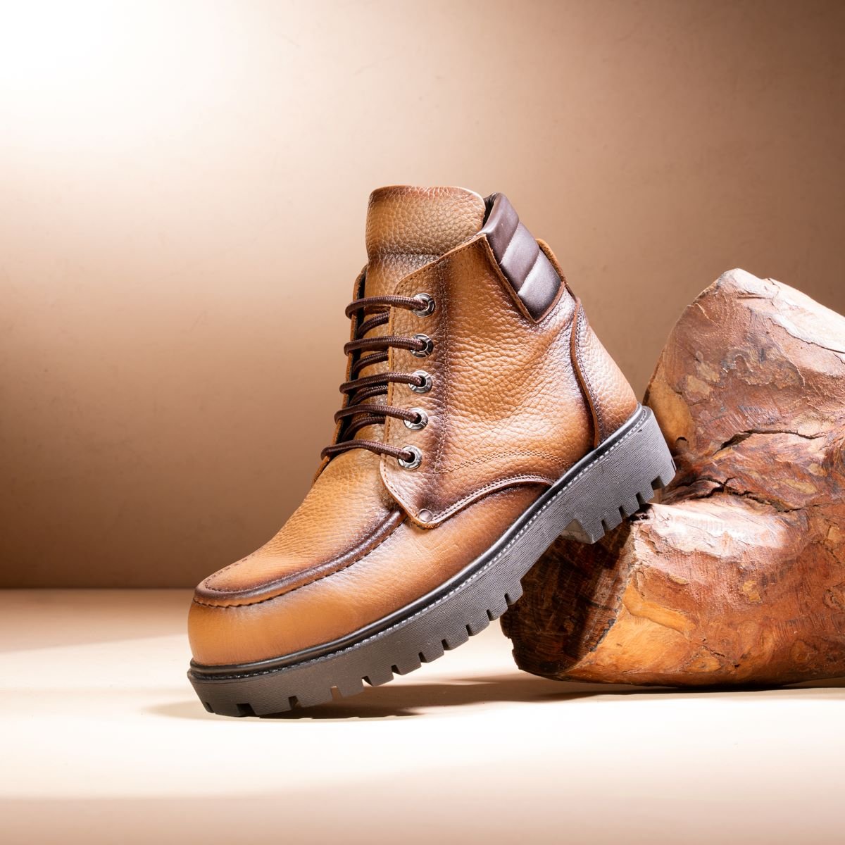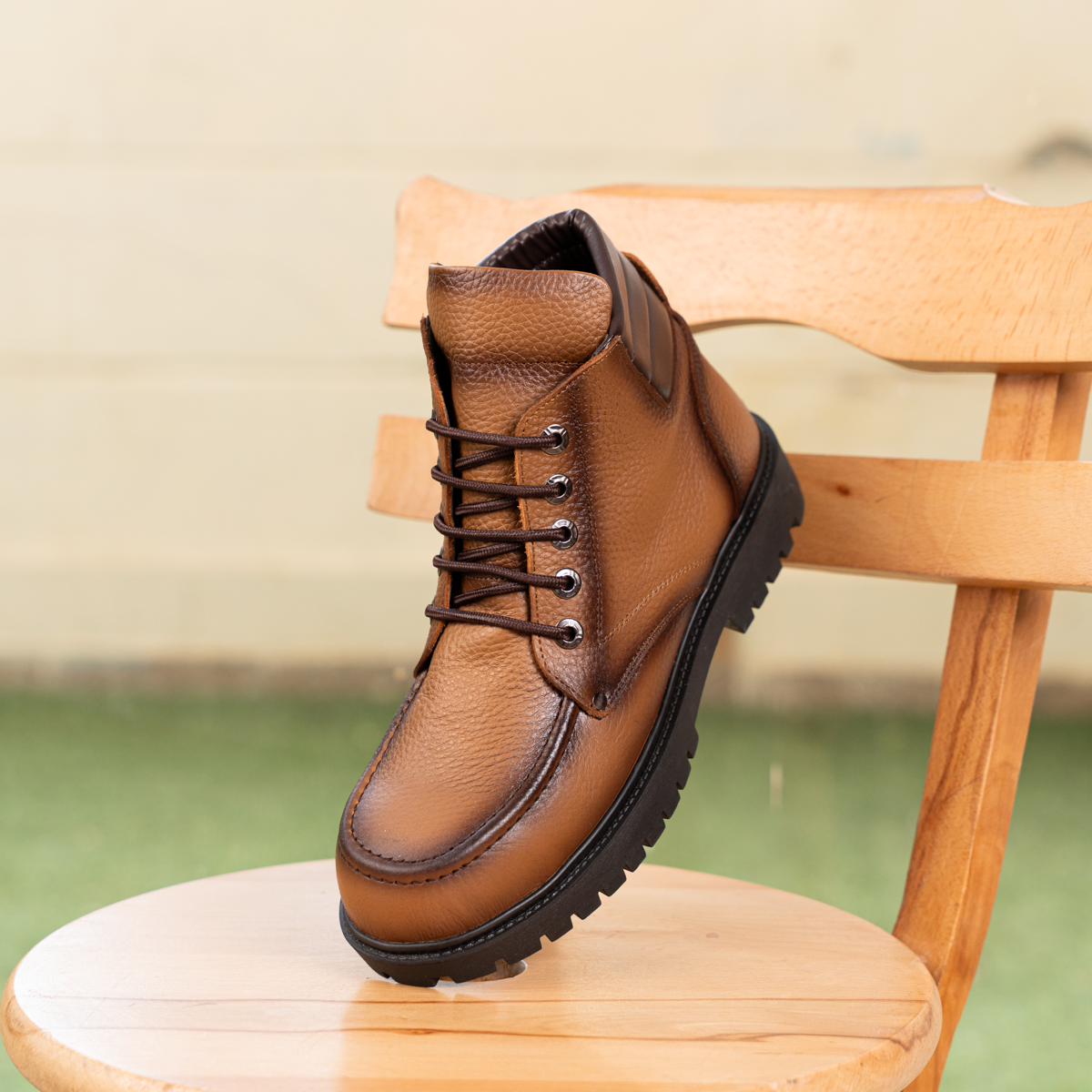 هاف بوت رجالي جلد طبيعي J2 بخامة فاخرة 100%، تصميم أنيق يناسب الخروجات والمناسبات، نعل مقاوم للانزلاق وفرش طبي مريح، متوفر بألوان أسود، بني، وهافان.